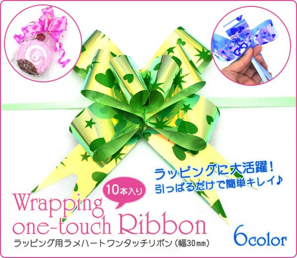 プレゼントのラッピングなどに ラッピング用ラメハートワンタッチリボン(幅30mm) 10本入り グリーン 1セット【ywx050】
