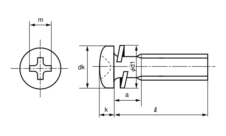 頭部形状 ナベ P=2 (+)十字穴付きの 「なべ頭」 で、頭部座面に バネ座金(スプリングワッシャー) を組込み、一体化した組み込みねじです。