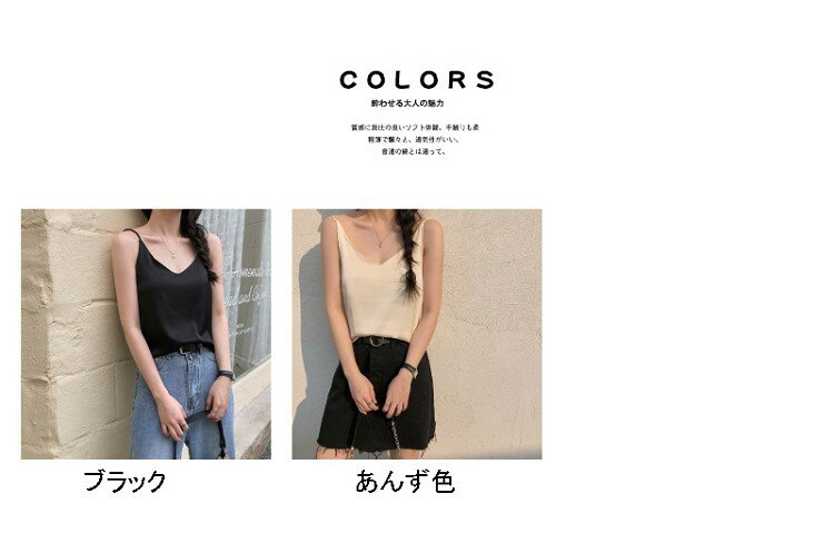 商品名【メール便送料無料】タンクトップ キャミソール シルク 無地 定番 ノースリーブ タンク 重ね着 レディース 春夏 カットソー 肌着 下着 黒 あんず色 ベージュ タンク キャミ 嬉しいプチプラ! フェミニン 可愛い セクシー シンプル ルームウェアカラーブラック,あんず色サイズフリーサイズ素材ポリエステル繊維ご注意●色合いはモニター環境により若干の誤差が出ます。